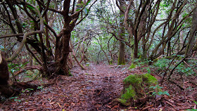 | Tangled rhododendron and doghobble. |